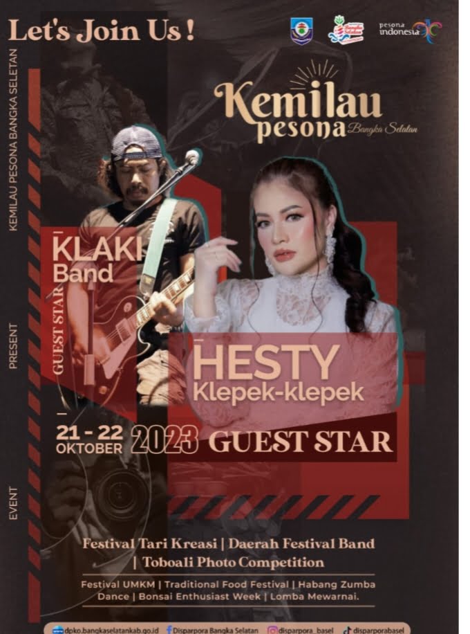 Event Wisata Pesona Kemilau Bangka Selatan akan diselenggarakan selama dua hari pada 21 s/d 22 Oktober 2023 nanti ini bertujuan untuk meningkatkan jumlah kunjungan wisatawan dan menciptakan ruang berkreasi bagi pelaku pariwisata dan ekonomi kreatif di Kabupaten Bangka Selatan.