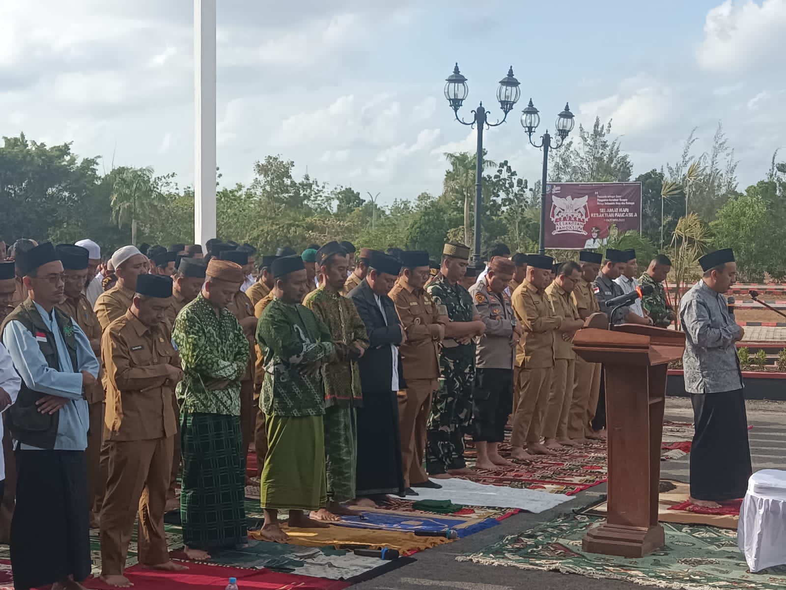 MOTRET.ID — Dandim 0432/Basel Hadir Sholat Istisqa Di Halaman Pemkab Bangka Selatan bersama ratusan pegawai lingkup Pemerintah Kabupaten Basel di halaman kantor bupati Bangka Selatan pada, Senin (16/10/2023).