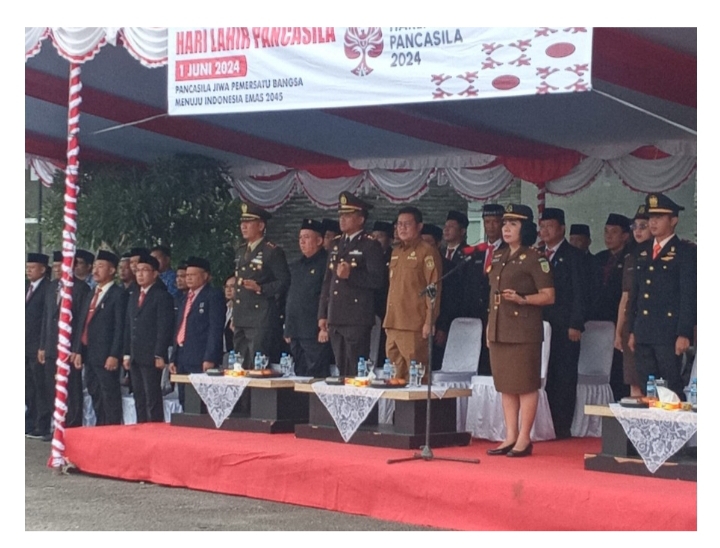 Bertindak sebagai Inspektur Upacara Kejaksaan Negeri Bangka Selatan Riama BR. Sihite, S.H., dengan membacakan Pidato Kepala Badan Pembinaan Ideologi Pancasila Republik Indonesia Prof. Drs. K.H. Yudian Wahyudi, M.A., Ph.D menyampaikan Peringatan Hari Lahir Pancasila Tahun 2024 ini mengambil tema “Pancasila Jiwa Pemersatu Bangsa Menuju Indonesia Emas 2045″. Tema ini mengandung maksud bahwa Pancasila menyatukan kita dengan segala perbedaan suku, agama, budaya, dan bahasa dalam menyongsong 100 tahun Indonesia Emas yang maju, mandiri dan berdaulat.