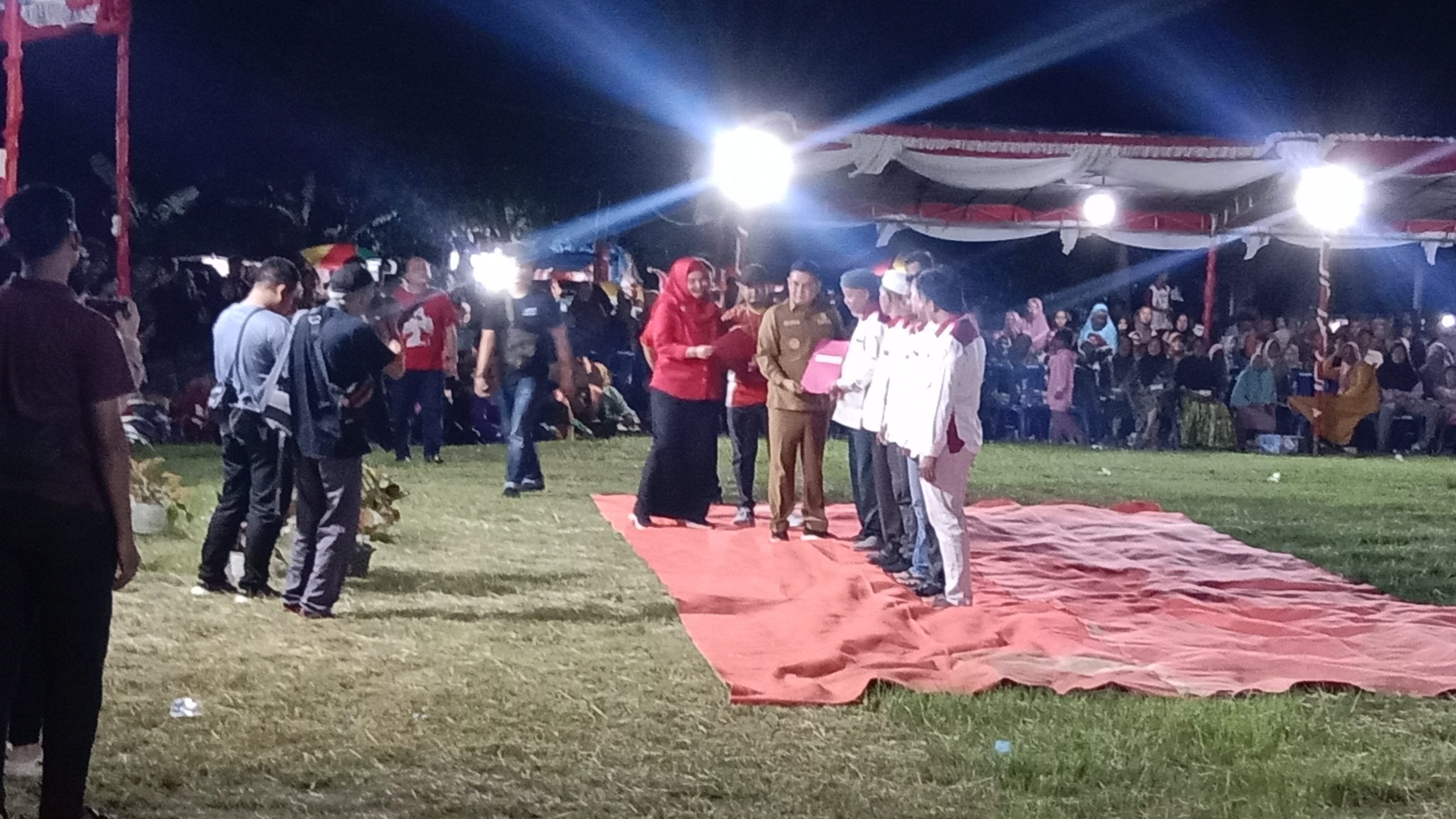 Pemberian kepada pelaku UMKM Desa Sadai dilakukan pada acara malam ramah tamah Bupati Bangka Selatan yang dilaksanakan dilapangan bola kaki Desa Sadai.