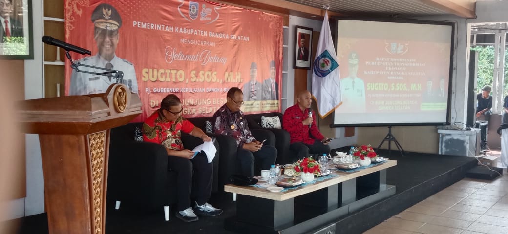 motret,id Bangka Selatan- Pjs Bupati Bangka Selatan, Bersama Pj Gubernur Kepulauan Bangka Belitung Pimpin Rapat koordinasi percepatan transformasi Ekonomi kabupaten Bangka Selatan, di Balai Daerah Rumah Dinas Bupati Bangka Selatan, Pada Rabu, ( 2/10/2024).