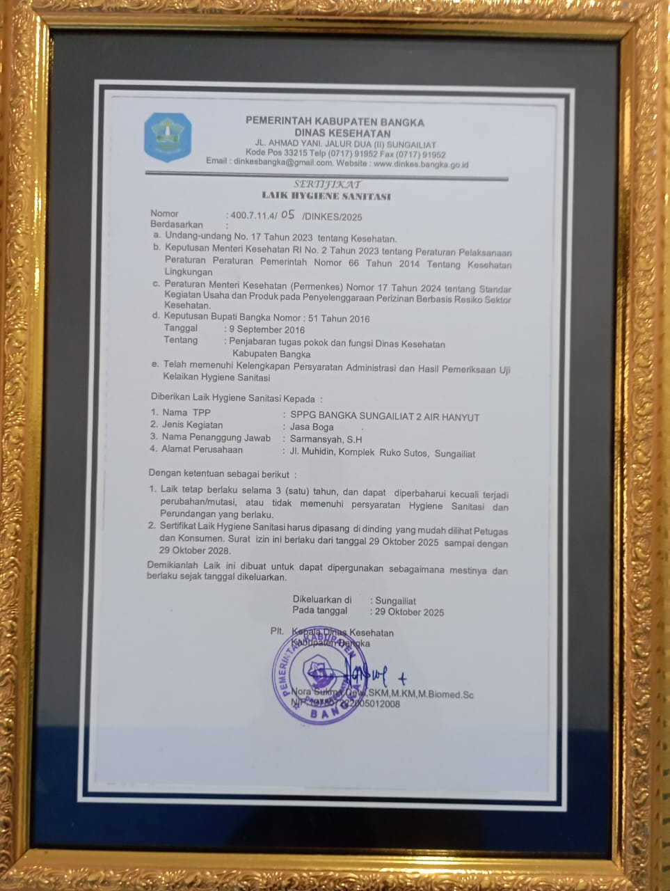 motret.id, BANGKA — Satuan Pelayanan Pemenuhan Gizi (SPPG) 2 Bangka, Provinsi Kepulauan Bangka Belitung, resmi menerima Sertifikat Laik Hygiene dan Sanitasi (SLHS) dari Dinas Kesehatan Kabupaten Bangka. Penghargaan ini menjadi bukti bahwa dapur penyelenggara program makan bergizi tersebut telah memenuhi seluruh standar kebersihan dan sanitasi yang ditetapkan pemerintah.